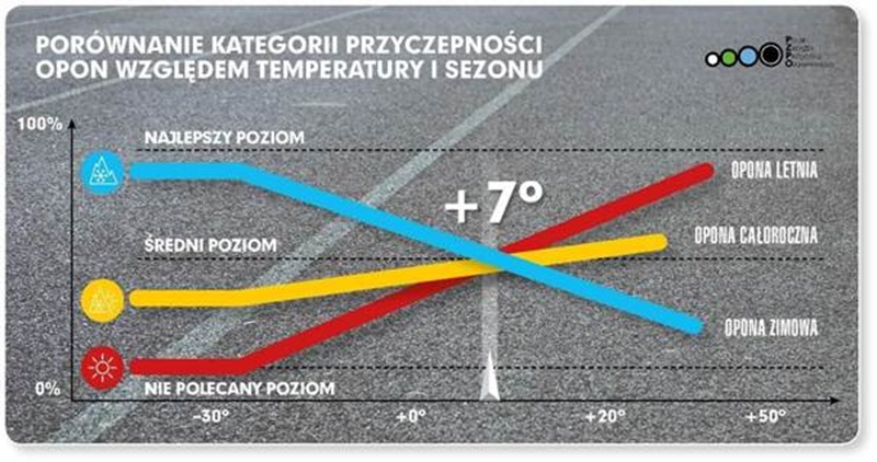 Różnica nie wynika z magii, tylko z fizyki. Bieżniki opon letnich są zaprojektowane z twardszej mieszanki gumowej, która przy wysokich temperaturach zachowuje odpowiednią elastyczność i przyczepność. Gdy temperatura spada poniżej 7, a w oponach sportowych 10 stopni, ta sama guma staje się coraz sztywniejsza i zmniejsza się jej do przyczepność. W mroźne poranki twardość bieżnika opon letnich przypomina twardość plastiku. Jazda na nich to ruletka, ale niestety z większą szansą na zniszczenie auta niż na inną wygraną.